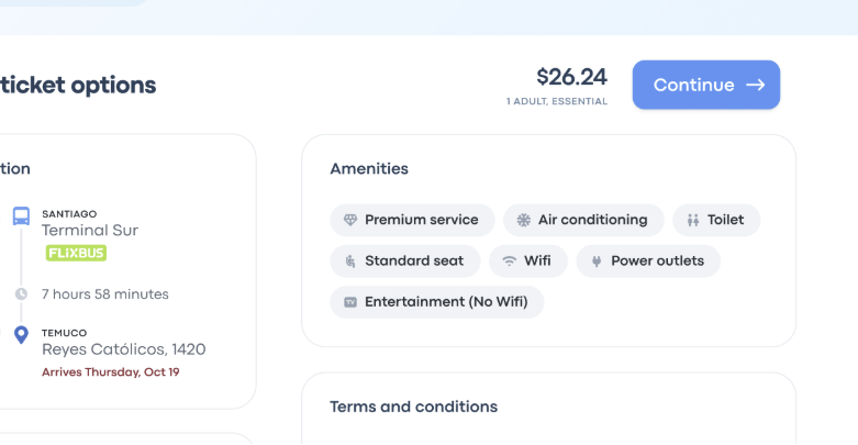 Premium trips include the amenities above by design. Standard trips may include some (or all) of these features, but they’re not guaranteed and can vary by route/operator. Always check the Amenities list on the ticket page before booking.